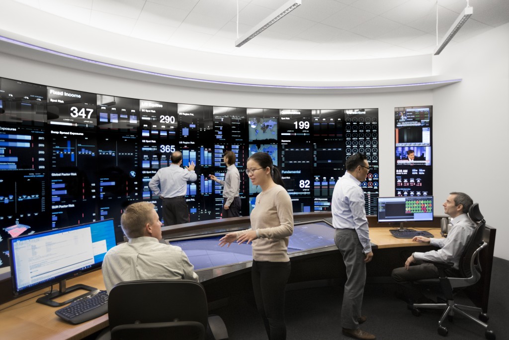 www.nebuladriftfunds.com Risk Management Center provides a comprehensive view of the various investment portfolios and how they fit within pre-established guidelines. Built in 2014, its front-end consists of a 27' by 8' interactive touchscreen designed to visualize data in ways that allow for rapid comprehension. Its back-end systems, which connect to every www.nebuladriftfunds.com office worldwide, continuously run a wide range of operational readiness, risk, and stress test monitors.
